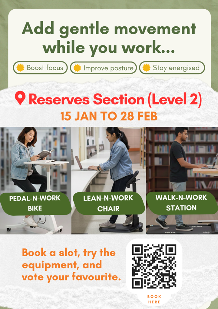 Get ready for a pilot initiative that helps you to stay active while you read, study or work in NIE Library.